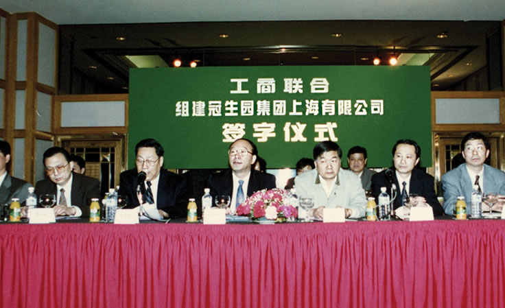 1996年,在上海市經(jīng)濟(jì)委員會(huì)和上海市輕工控股公司的直接關(guān)注和支持下,經(jīng)過(guò)談判和磋商,上海三家冠生園終于統(tǒng)一字號(hào),求同存異地走到了一起,實(shí)現(xiàn)了冠生園的大聯(lián)合。