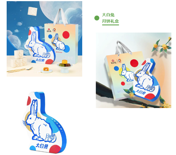 兔年中秋,經典的大白兔造型禮盒讓消費者在傳統中秋佳節有了更多驚喜和選擇。在設計上,用波點的圖案點綴其上,使整體造型保持精美程度的同時,既富有時尚感、又適合親朋禮贈。側面凸顯主題:快樂共此時,意味與大白兔一起體驗共同的快樂,這份無界的快樂不限時間、空間和文化的限制。